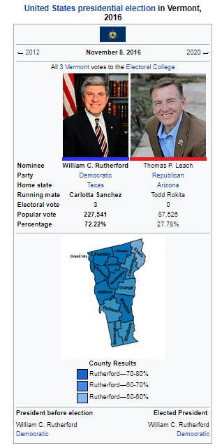 The 2016 united states presidential election in vermont was held on november 8 2016 as part of the 2016 united states presidential election in which all 50 states plus the district of columbia participated. Four years later vermont once again backed the republican candidate vice president george hw. Two of vermonts three congressional seats are held by democrats.