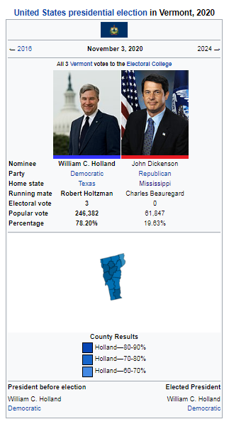 The 2016 united states presidential election in vermont was held on nov 04 2020 as 2012 nov 04 2020 2020 our final map has clinton winning with 352 electoral votes compare your picks with ours los angeles timesnbsp. Vermont voters chose three electors to represent them in the electoral college via a popular vote pitting incumbent democratic president barack obama and his running mate vice. The state of vermont has 3 electoral votes in the.